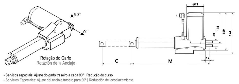 | Desembrague rápido para CPR | Tensão do motor: 24VCC |